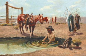 A PAUSE THAT REFRESHES – oil on canvas. 24″ x 36″, 1959 – Joe Beeler