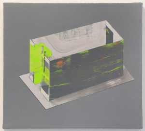 MODEL – acrylic, flashe, casein on jute, panel. Cory Antis